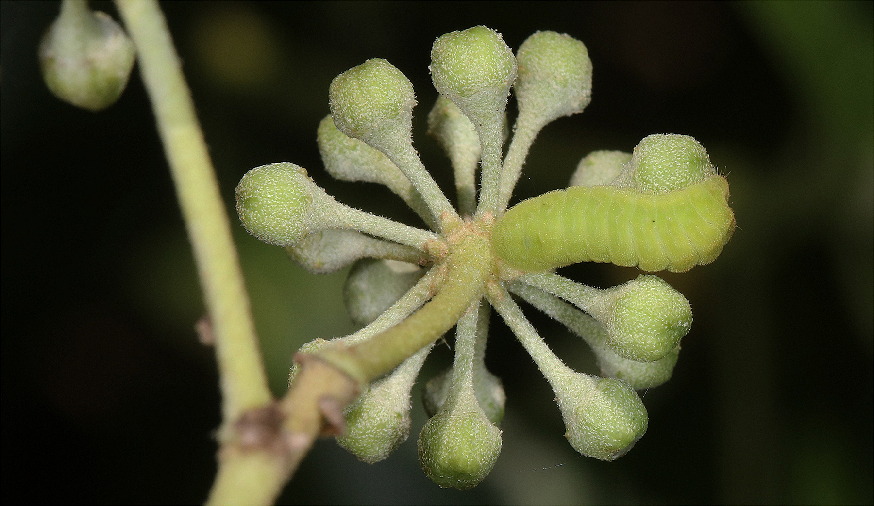 Chenille L2 sur fleur de "Lierre grimpant (hedera helix)"