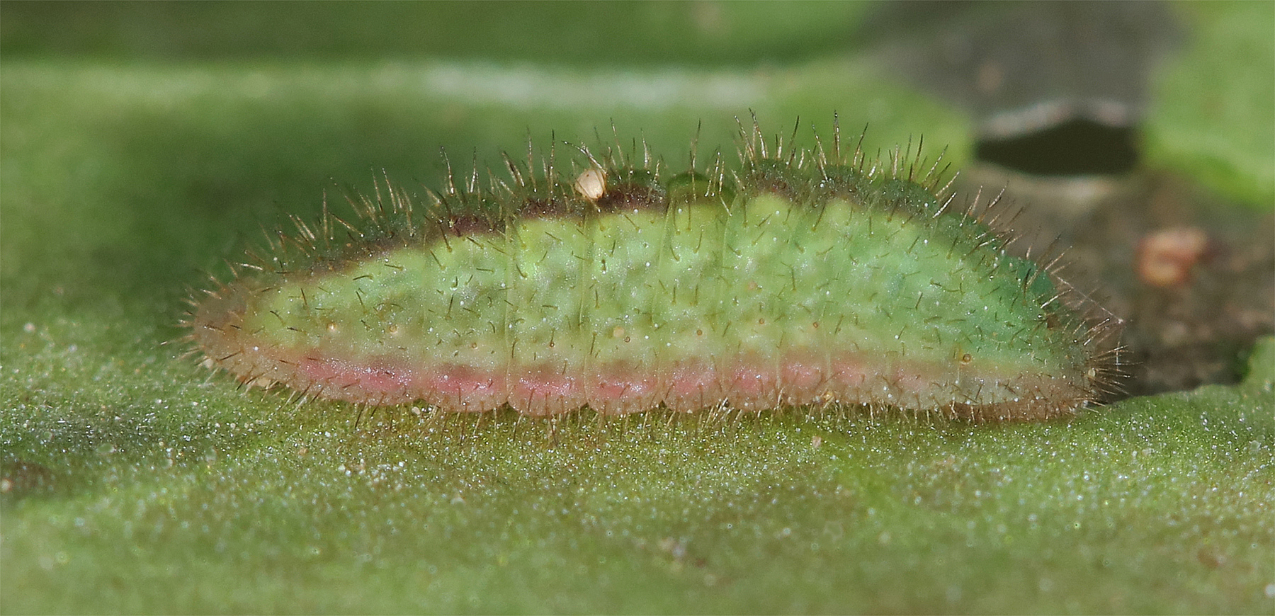 Chenille dernière mue (Verte avec des bandes légèrement roses )