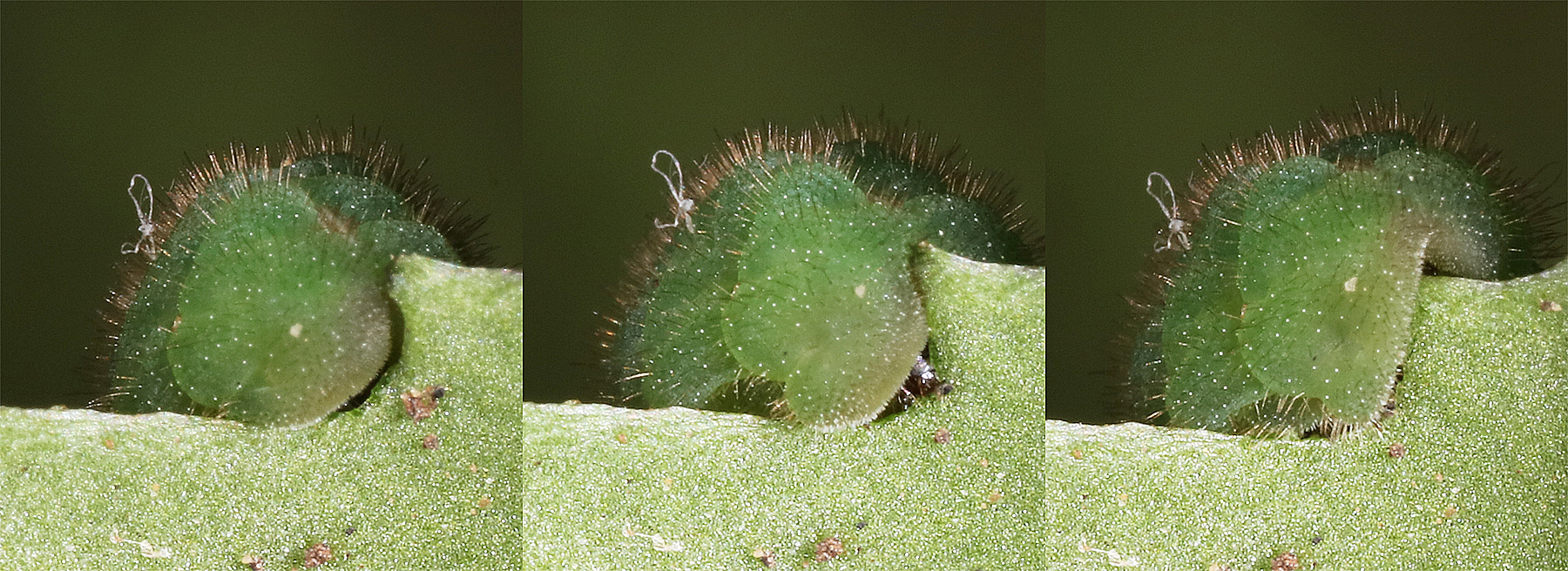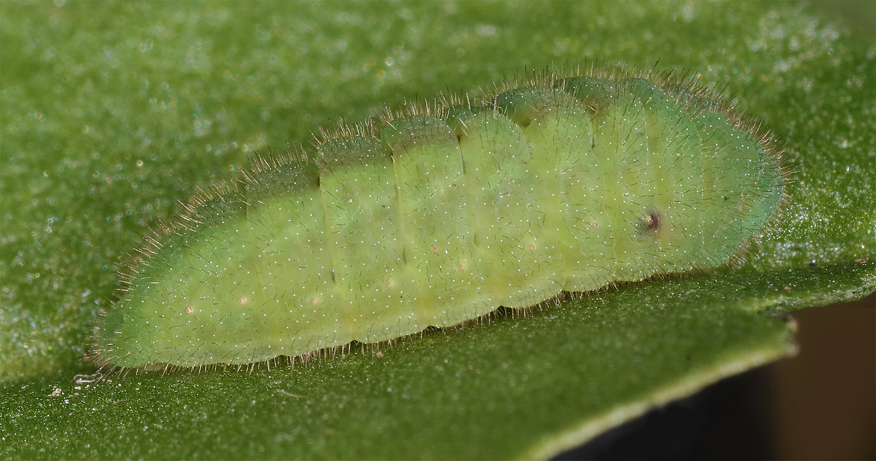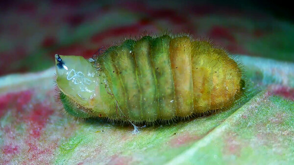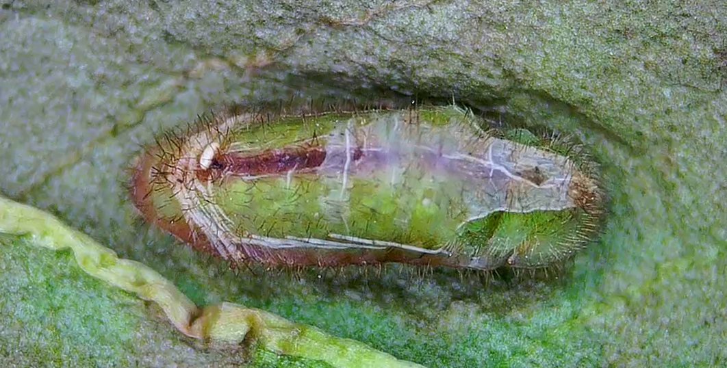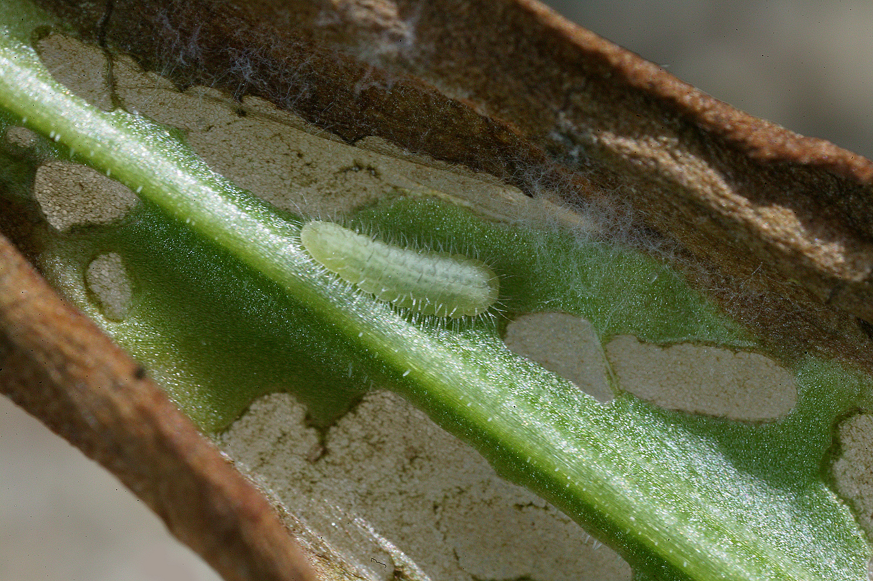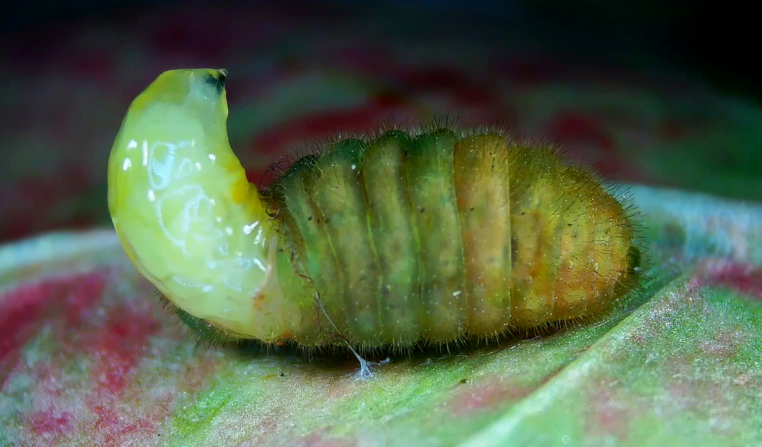 Tentative de prénymphose (Parasite Tachinaire qui essaye de percer la peau de la chenille)