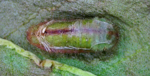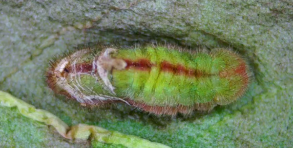 Chenille dernière mue (Bourelets roses qui cachent la tête)