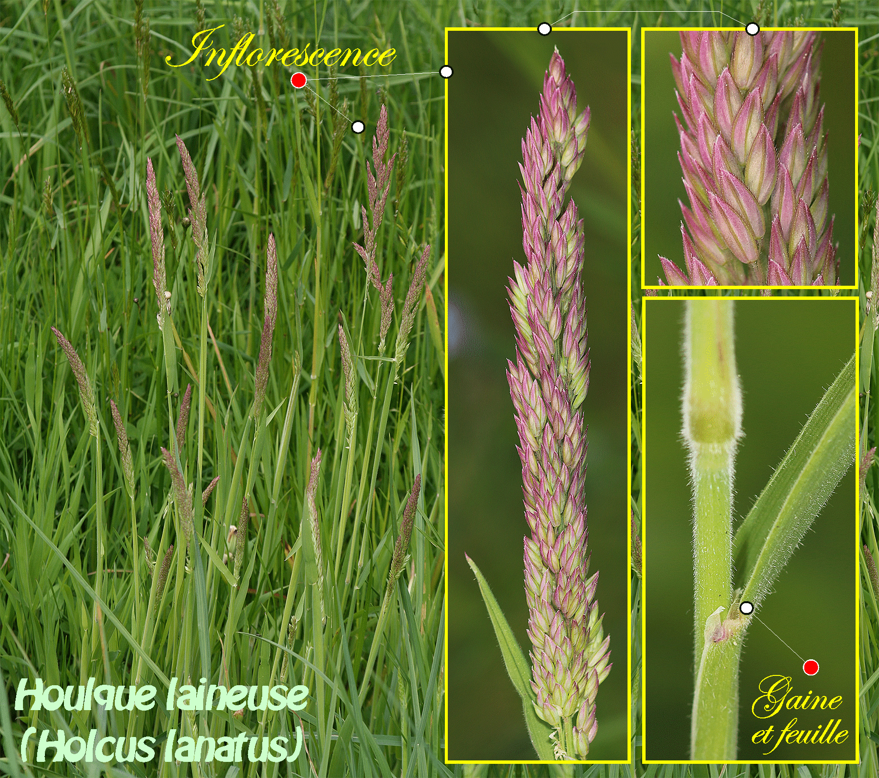 Holcus lanatus : Houlque laineuse, famille des poacée