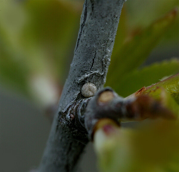 Chenille L1 2ème jour après éclosion qui déguste son premier bourgeon.