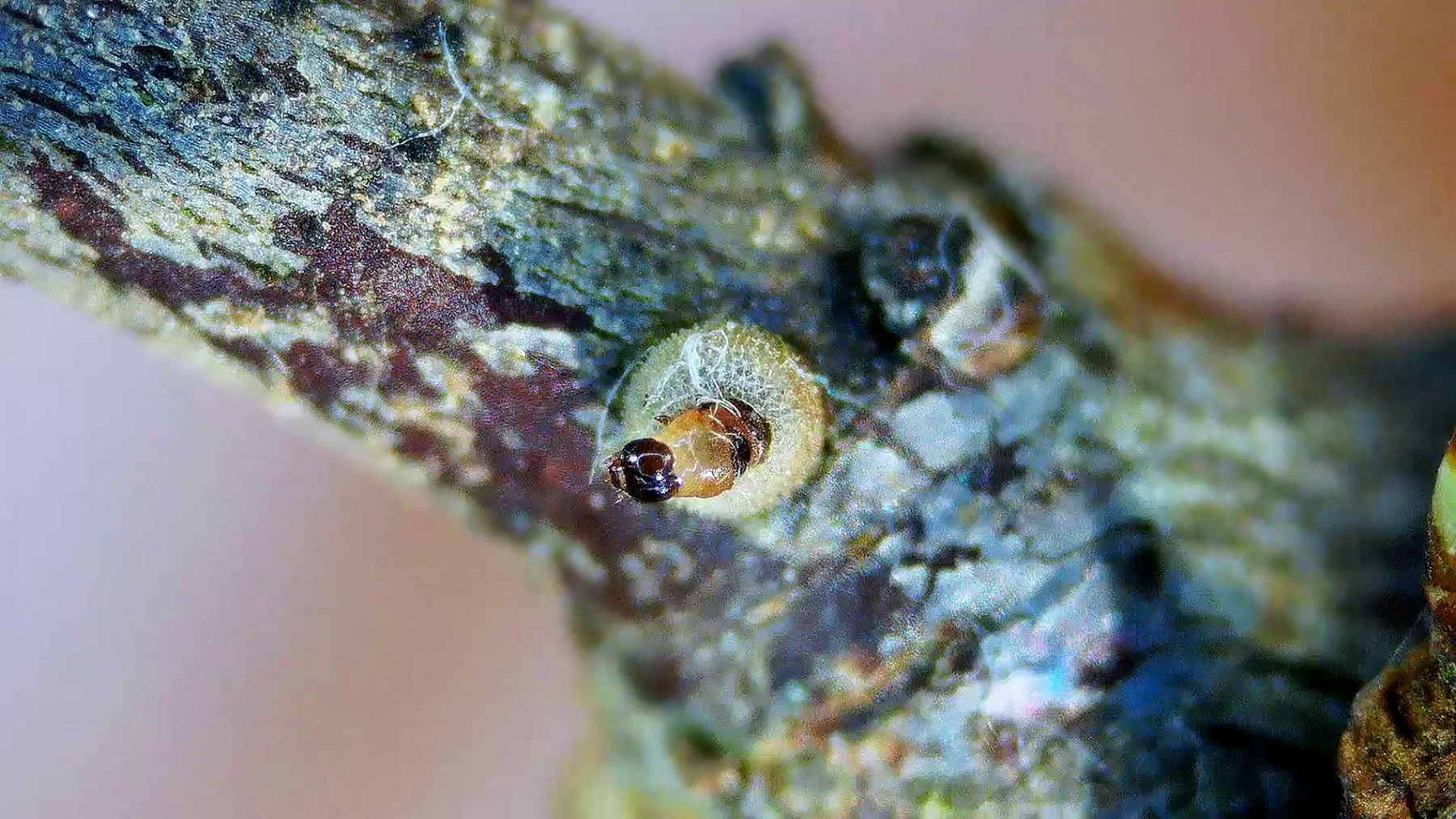 Chenilles L3 sur les fleurs de Prunus Spinosa (Mimétisme)