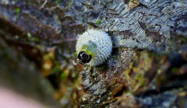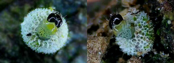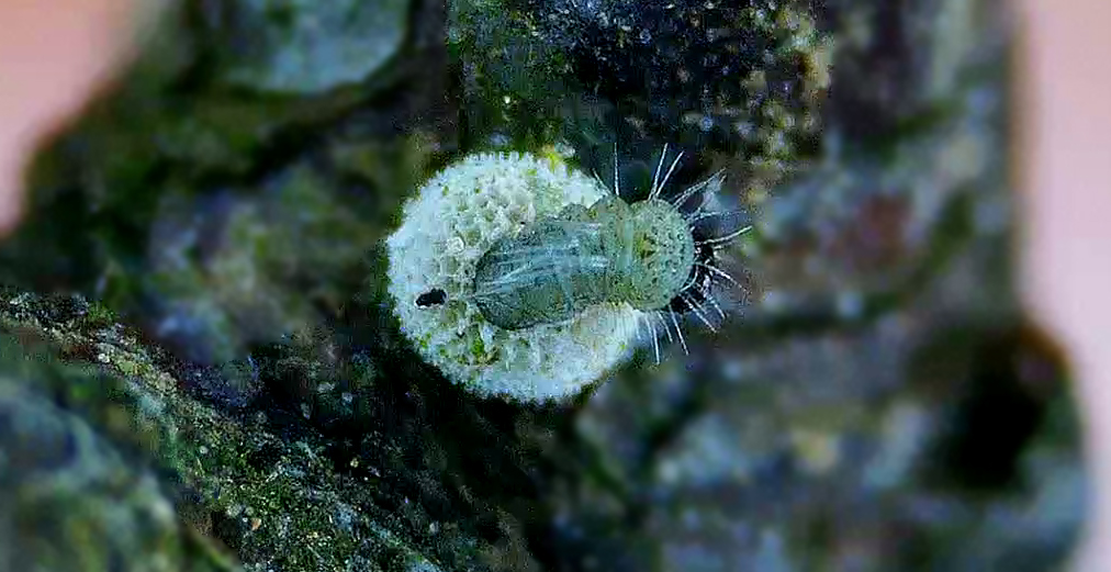 Chenille 1ère mue en position de mue