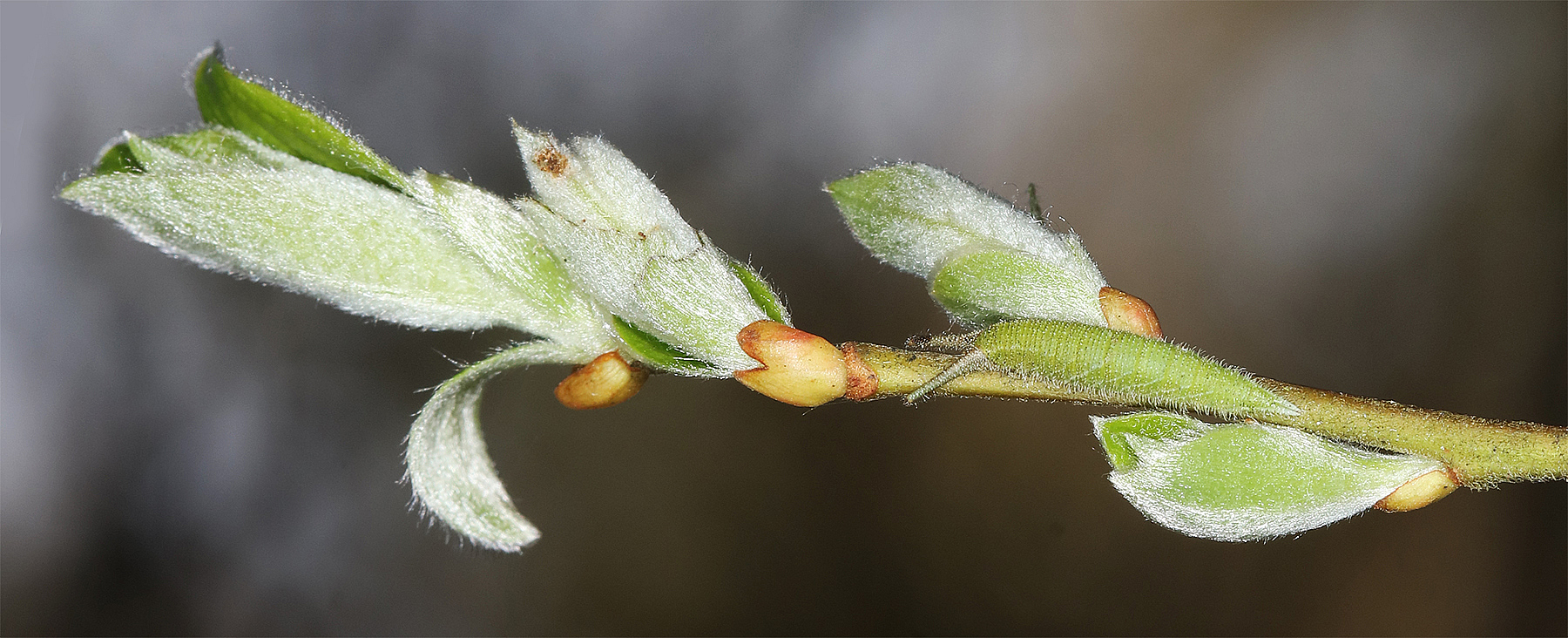 Chenille sur Saule marsault (Salix caprea)