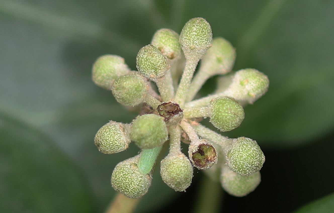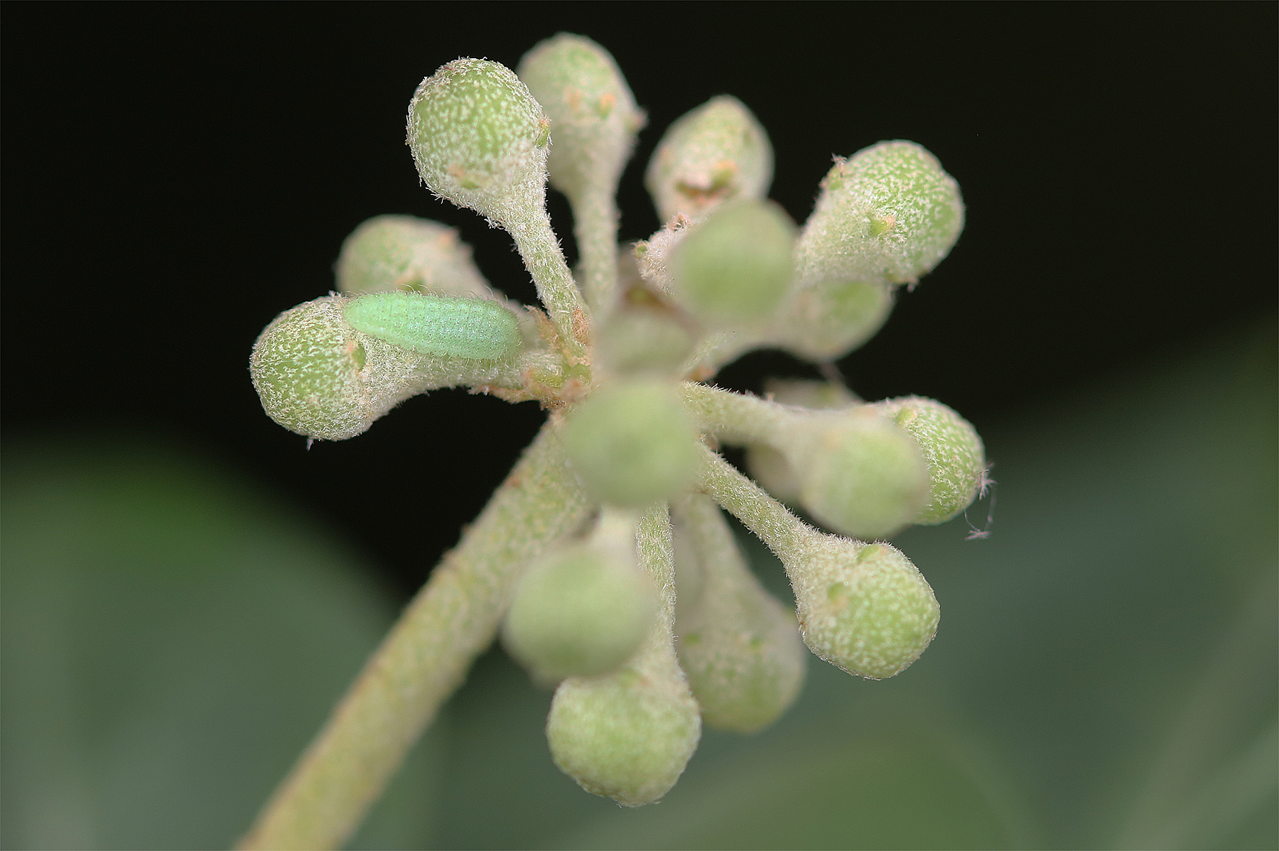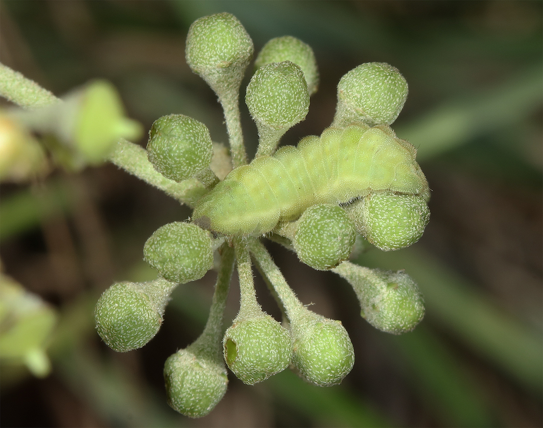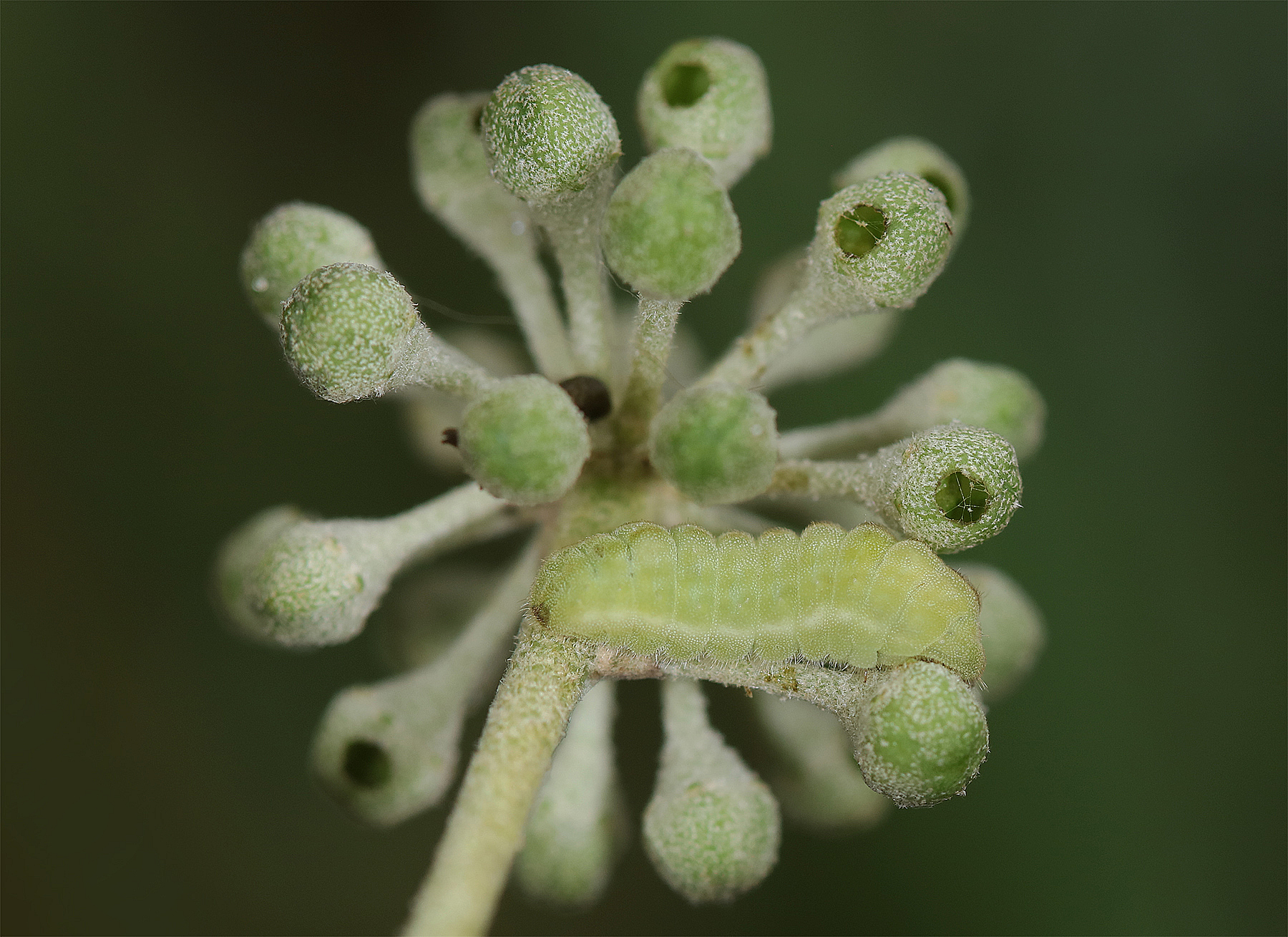 Chenille L2 sur fleur de "Lierre grimpant (hedera helix)"