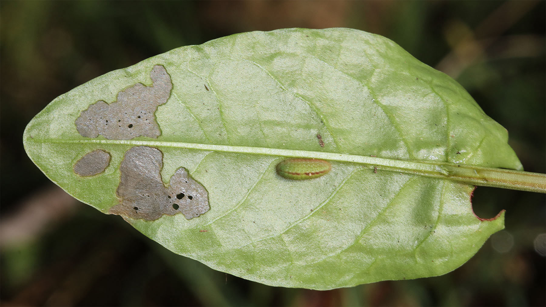 Œuf sur Oseille Crépue (Rumex cripus) Polygonaceae
