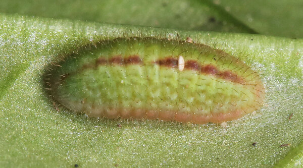 Chenille dernière mue (Verte avec des bandes légèrement roses )