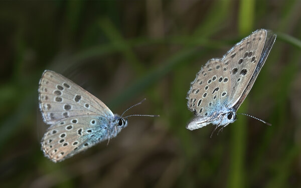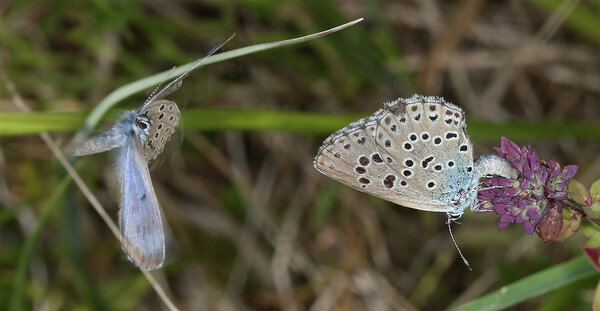 Chenilles "verte" à gauche L1 Merrifieldia baliodactylus et à droite "rose" L1 Phengaris arion