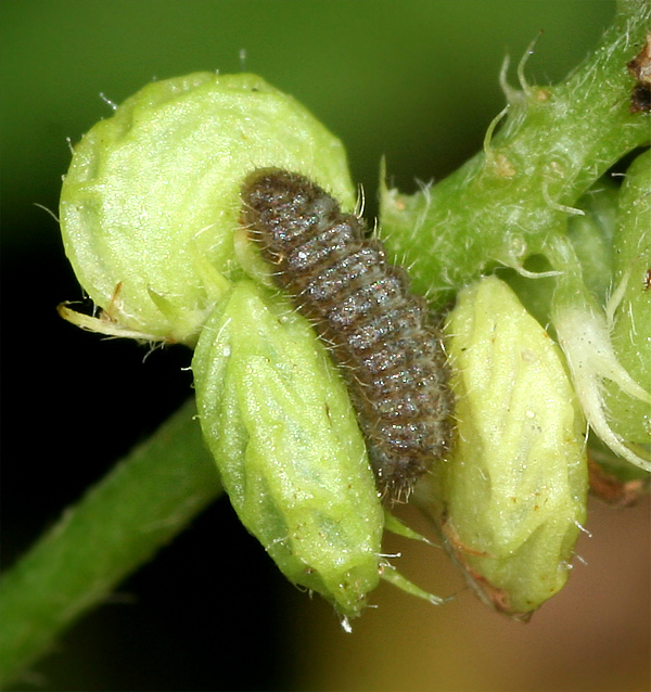 Chrysalide : Pour effectuer la diagnose entre Argiades et Alcetas il faut compter le nombre de poils sur les