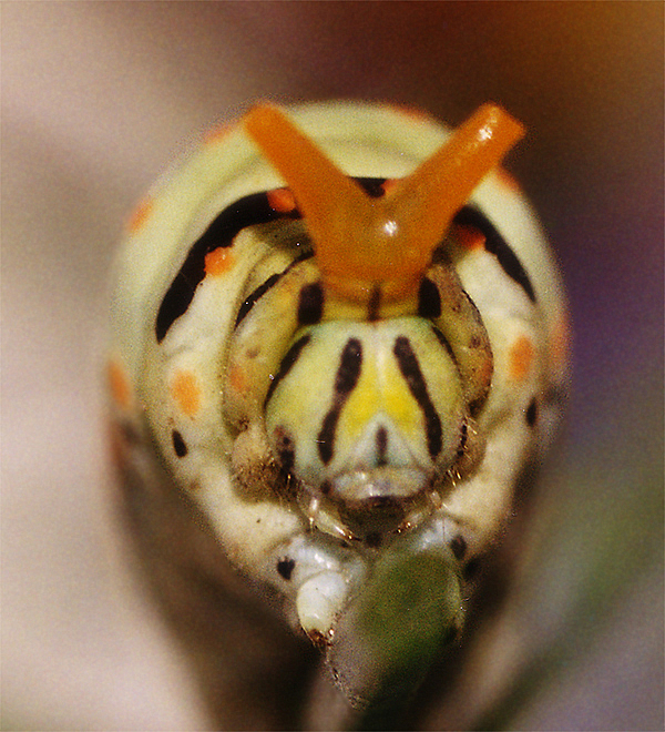 Chenille L4 sur Ptychotis saxifraga (Ptychotis à feuilles variées)