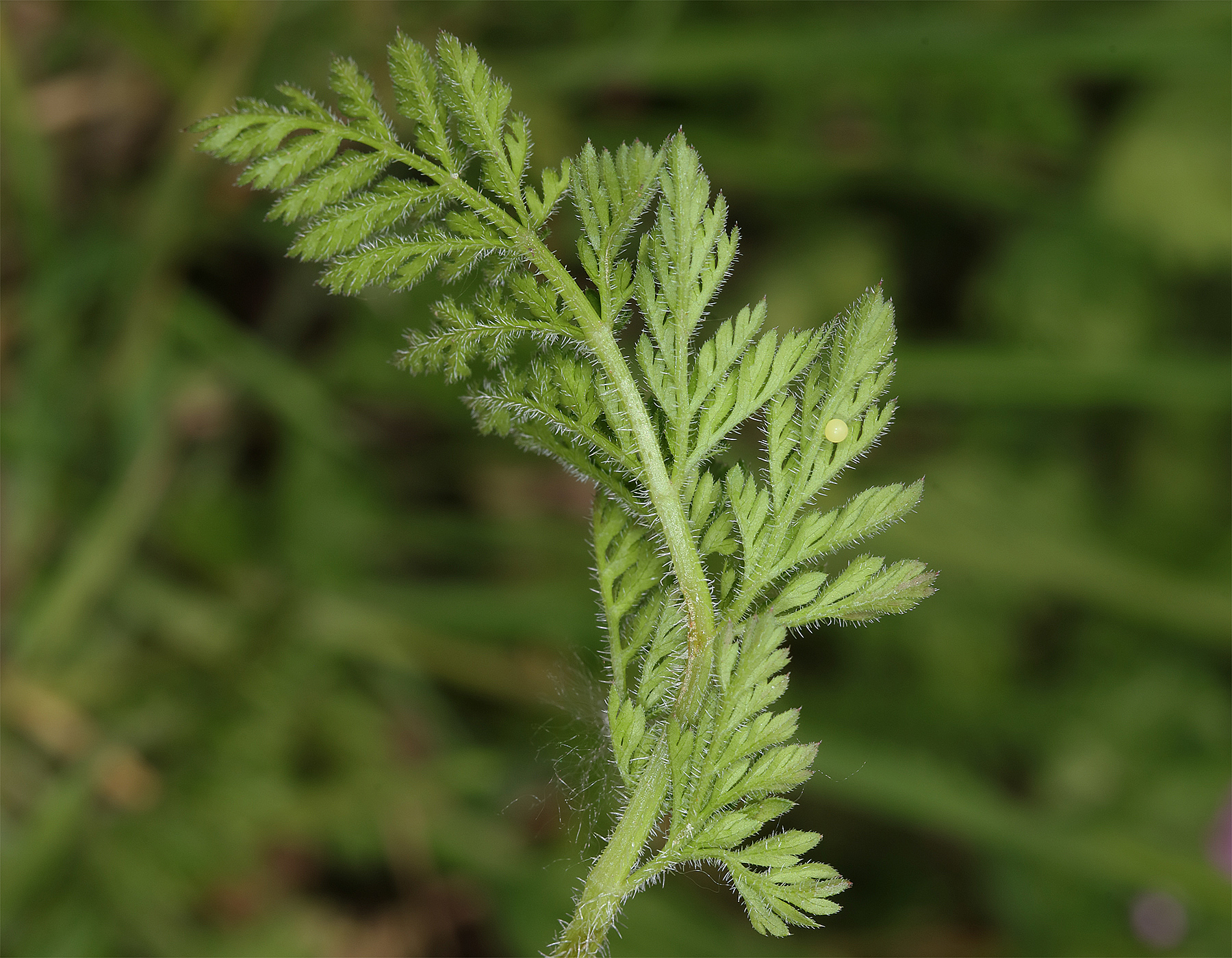 Œuf déposé sur carotte sauvage (Daucus carota)