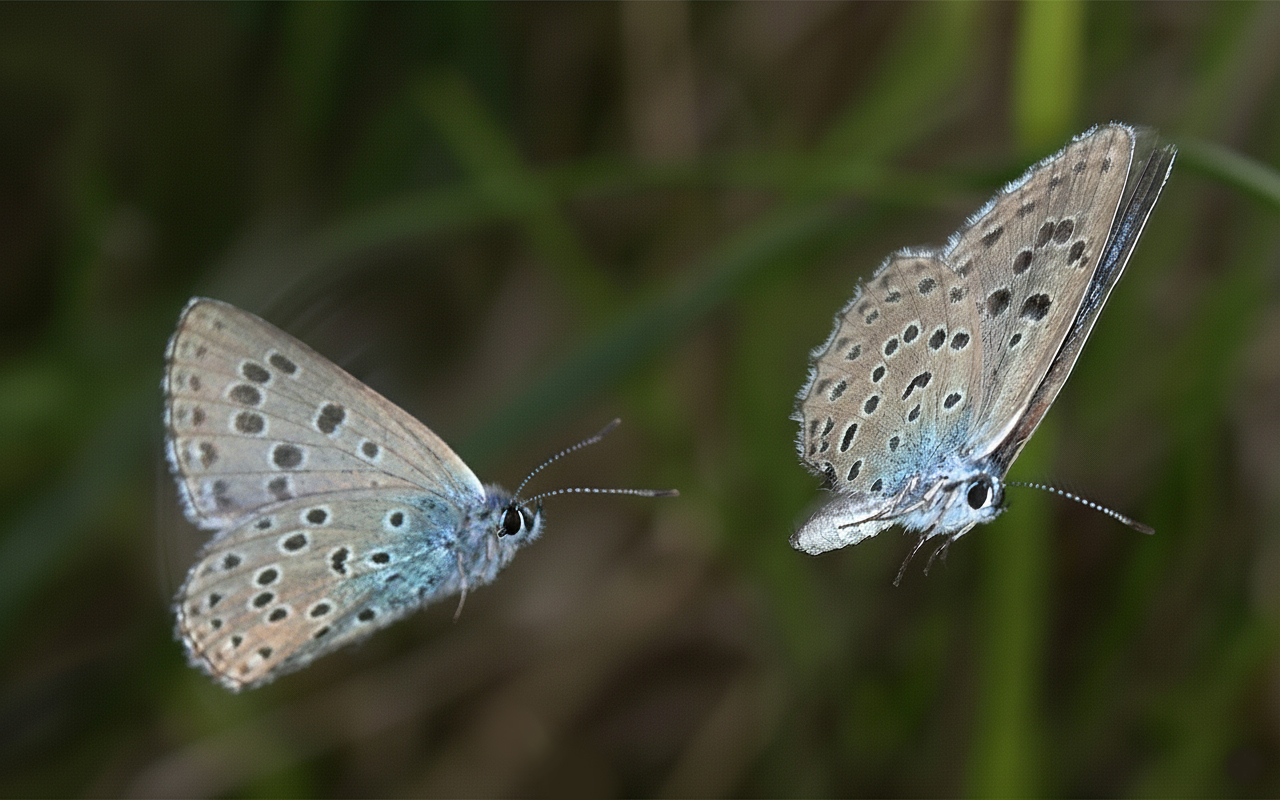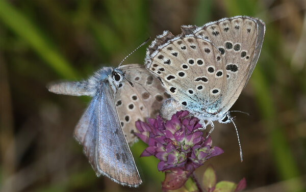 Chenilles "verte" à gauche L1 Merrifieldia baliodactylus et à droite "rose" L1 Phengaris arion